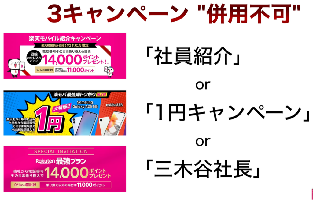 楽天モバイル従業員紹介キャンペーンと併用できるキャンペーン|最大37,500円相当お得になる組み合わせを解説