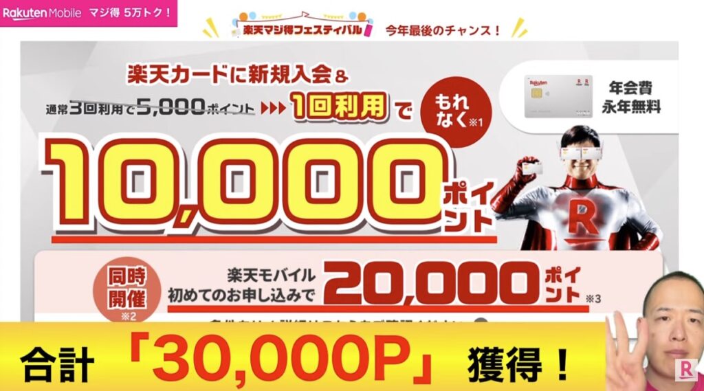 関連動画「【楽天モバイル】マジ得フェスティバルで5万円得!社員直伝の裏ワザ公開!」で解説しているので、ぜひ参考にしてみてください。
