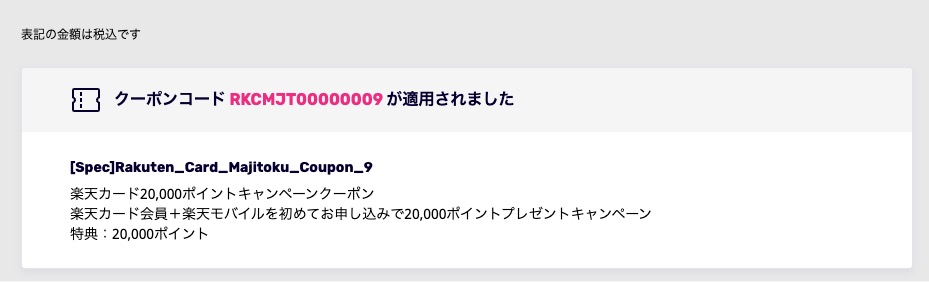 ※三木谷キャンペーンでは、キャンペーンコード2169(20,000円割引)は併用不可
