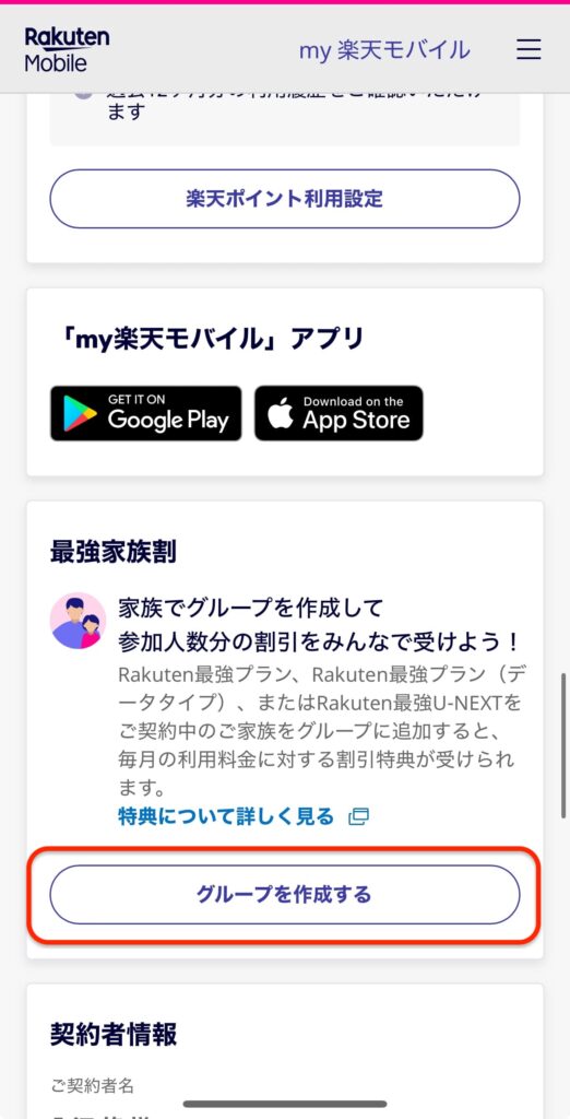 my楽天モバイルアプリから「最強家族プログラム」に登録するだけです。同一名義の2回線でも適用されます。詳しい手順は「STEP 4|家族割(最強家族プログラム)に登録する」で解説しています。