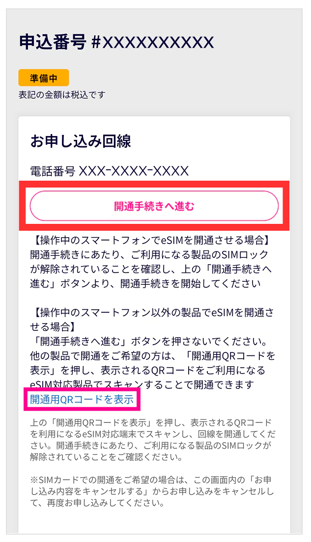 - 新規契約(SIMのみ)の場合