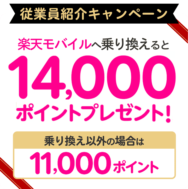 楽天モバイル従業員紹介キャンペーン - 乗り換えで14,000ポイントプレゼント